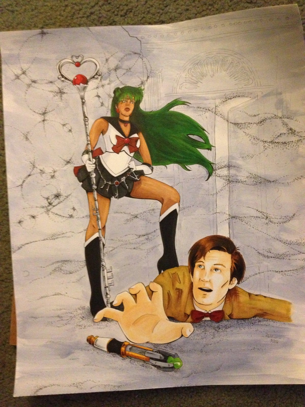 This got me to thinking of how Sailor Pluto must be bored out of her mind being stuck guarding a door until someone comes through. But who would end up going through the doors? The answer that popped into my head was that she might get a visit from the Doctor. But is it even taboo for the doctor to travel through Pluto’s domain?